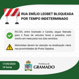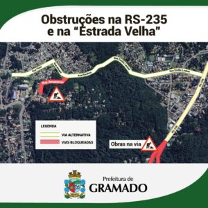 ⚠️ Veículos leves que se deslocam no sentido Canela/Gramado terão que ingressar na Rua Emílio Leobet e acessar a Rua Roraima, para seguir em direção