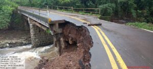 Mais de 25 trechos foram impactados com quedas de barreira, rompimento de pista e queda de ponte A Empresa Gaúcha de Rodovias (EGR) está atuando