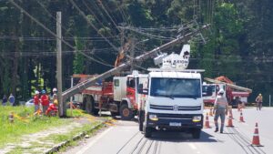 Parte da cidade de Canela ficou sem energia elétrica devido a troca de um poste de energia elétrica, na RS 235, estrada Canela – Gramado.