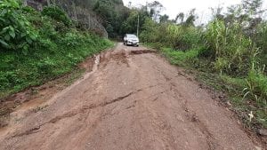 O deslizamento de terra de um barranco motivou a interdição da Estrada da Linha Ávila, logo depois da Estação de Tratamento de Esgoto da Corsan