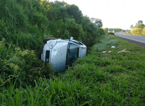 Na madrugada de sábado (25), por volta das 05h, um veículo FIAT/Palio Weekend, com placas de Canela, saiu da pista e tombou na ERS-324 entre