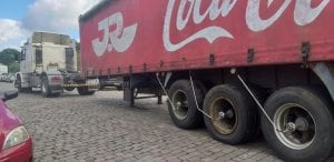 Uma carreta de empresa de bebidas proporcionou uma cena inusitada no centro de Canela, na tarde de hoje (8). Por volta das 15h, a carreta