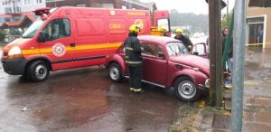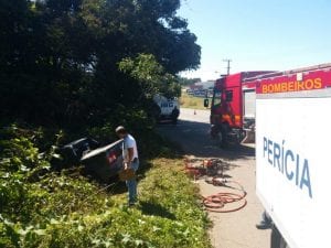 Por volta das 09h30min de hoje (22), os Bombeiros de Canela foram acionados para atender uma ocorrência onde o veículo teria saÃído da pista e
