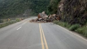 Um deslizamento de terra deixou a Rota do Sol parcialmente interrompida na tarde desta quarta-feira (22). A queda de barreiras aconteceu por volta das 14h
