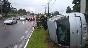 Hoje (21), por volta das 13h30min uma Meriva Joy prata, com placas IPN5884 de Nova Petrópolis, na ERS-235, capotou poucos metros a frente da rótula