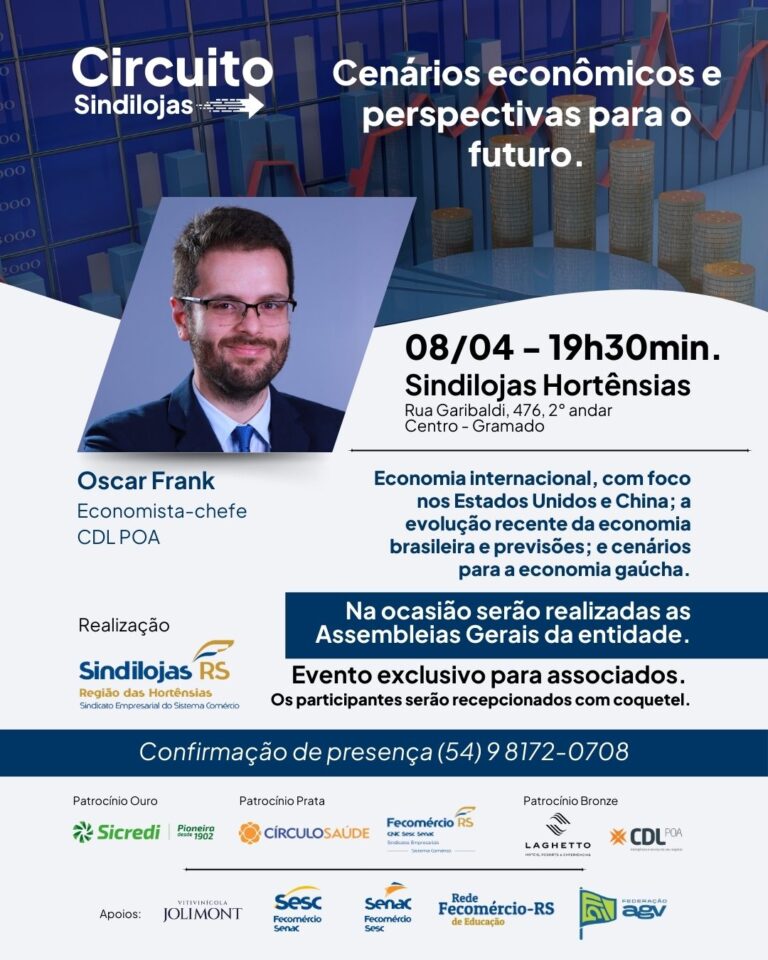 Na ocasião, também serão realizadas as Assembleias Gerais da entidade. Economia, liderança, turismo, inovação, área trabalhista e tributária, marketing e empreendedorismo feminino serão os temas