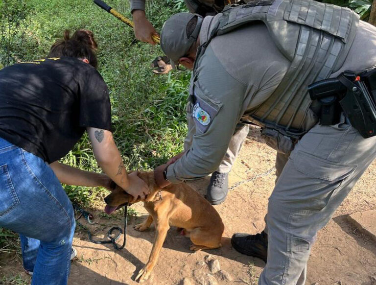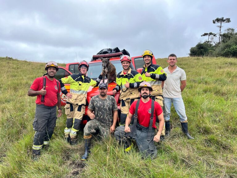 Uma operação de resgate mobilizou equipes do Corpo de Bombeiros de Canela e Cambará do Sul na segunda-feira (11), após um cachorro cair de uma