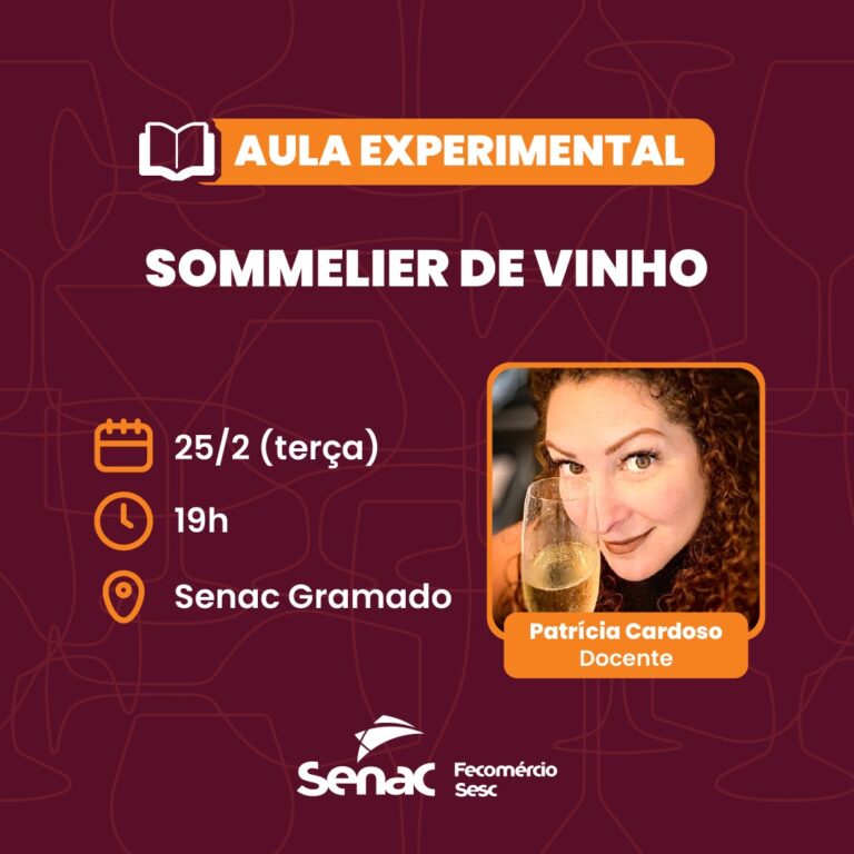 Na próxima terça-feira, dia 25 de fevereiro, às 19h, o Senac Gramado promoverá uma aula experimental gratuita do curso de Sommelier de Vinhos. A atividade