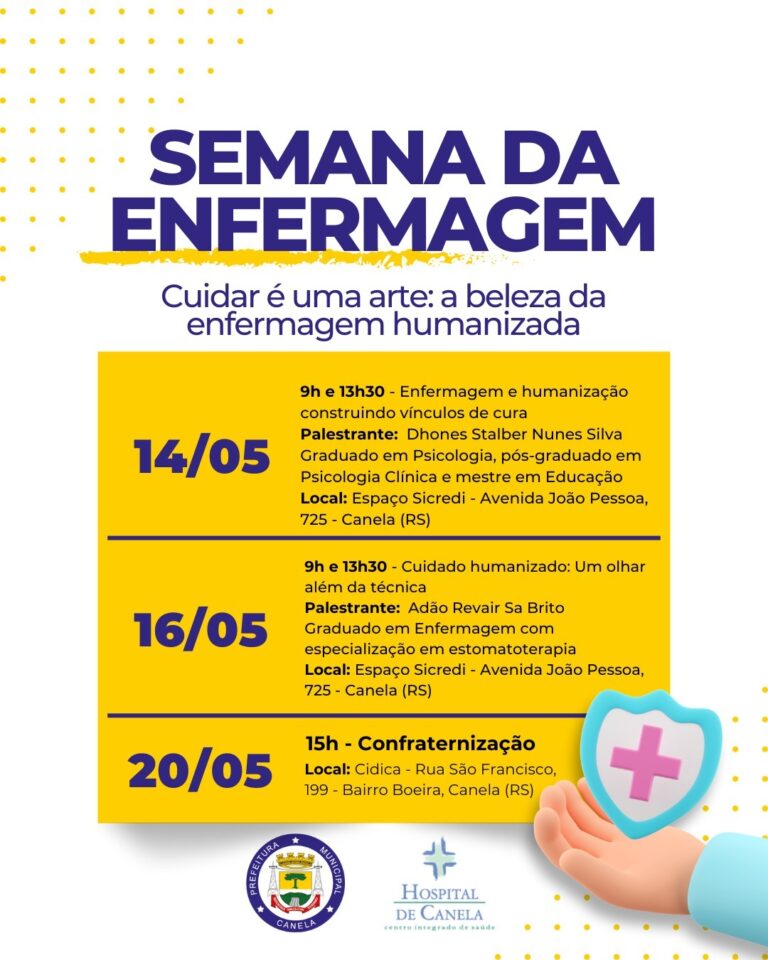 Visando debater o olhar humanizado na enfermagem, a Prefeitura de Canela, através da Secretaria Municipal de Saúde, realizará a Semana da Enfermagem com atividades nos