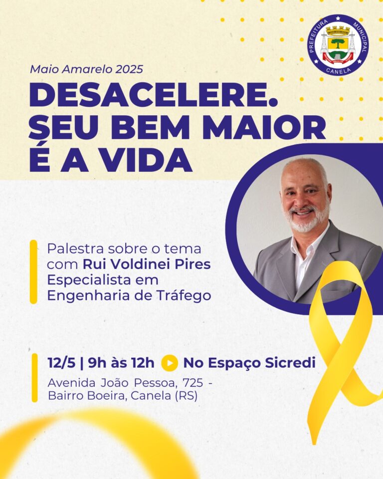 Palestra com especialista em engenharia de tráfego acontece no dia 12, no Espaço Sicredi A Secretaria de Trânsito, Transportes e Fiscalização, da Prefeitura de Canela,
