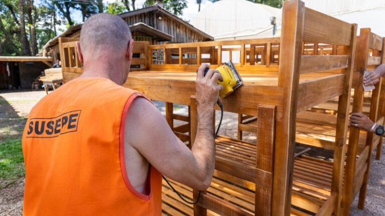 Em Canela, diversos beliches foram fabricados por apenados Em maio do ano passado, quando o Rio Grande do Sul foi atingido pela tragédia climática, a