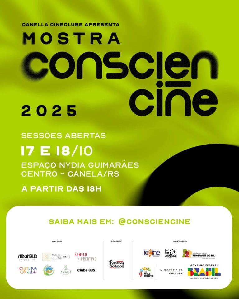 Primeira edição da Mostra de Cinema Ambiental Consciencine acontece no fim de semana em Canela, com exibições gratuitas A MOSTRA CONSCIENCINE inicia nesta sexta-feira, 17/10, e conta