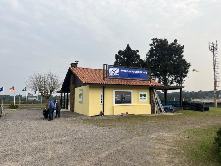 Uma aeronave realiza na tarde desta terça-feira (14) uma série de manobras no Aeroporto de Canela como parte de um procedimento técnico denominado GEIV –