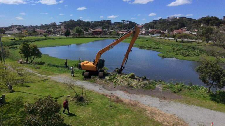 A Prefeitura de Canela deu início, na tarde desta segunda-feira (13), ao trabalho de limpeza da vegetação que se formou sobre o espelho d’água do