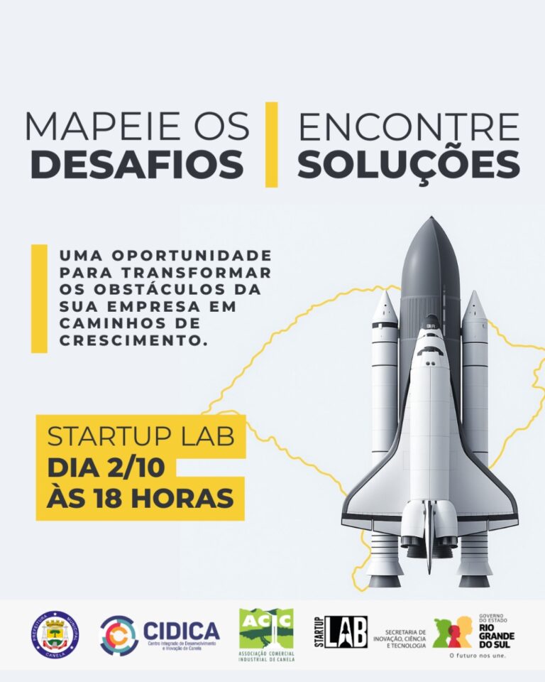 Empresas e empresários de Canela têm mais uma oportunidade de participar do Startup Lab, em Canela: será na próxima quinta-feira, dia 2, às 18 horas,