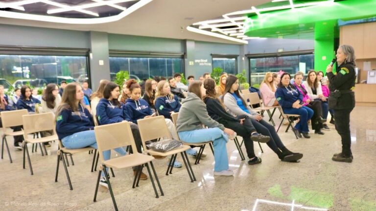 A Polícia Civil realizou, no Espaço Sicredi de Canela, um Papo de Responsa voltado a intercambistas, jovens rotarianos e familiares do Rotary Club de Canela