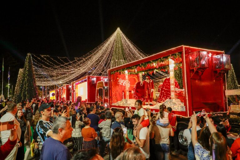 A magia e o encantamento proporcionados pelos caminhões iluminados da Caravana de Natal da Coca-Cola FEMSA puderam ser novamente vivenciados neste sábado, dia 13, quando