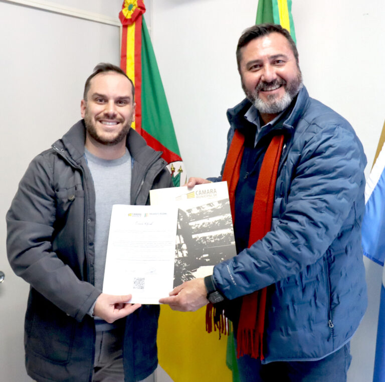 O presidente da Câmara de Vereadores de Canela, Felipe Caputo, recebeu nesta quarta-feira, 30, a visita do vereador Tenente Cristiano Becker (PRD), de Caxias do