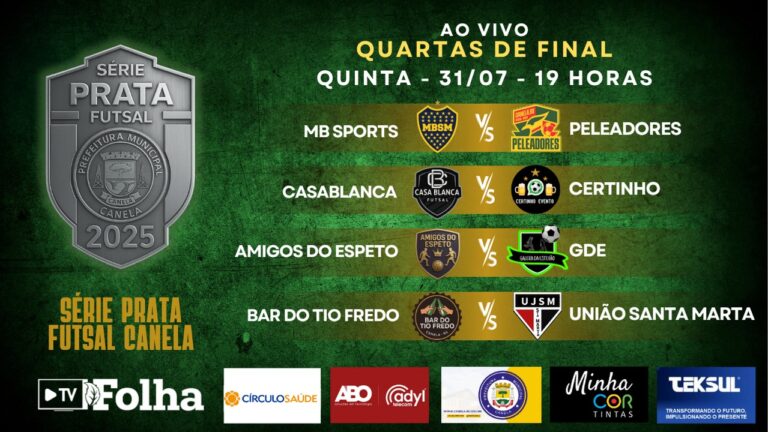A fase decisiva da Série Prata de Futsal de Canela 2025 começa nesta *quinta-feira, 31 de julho, com os jogos das *quartas de final no