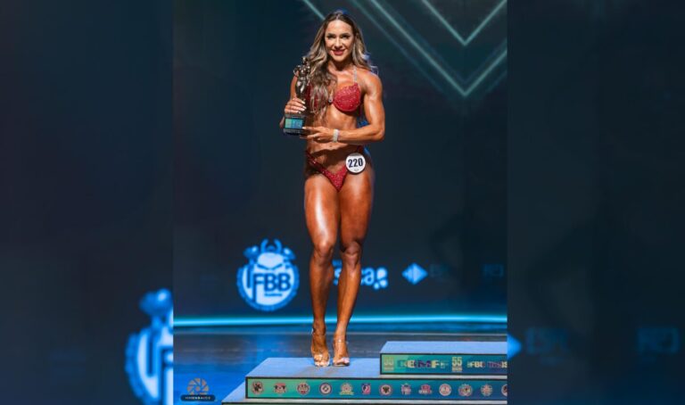 A atleta Pâmela Moraes, de Canela, garantiu o segundo lugar na categoria Wellness acima de 1,68m no 55º Campeonato Brasileiro de Fisiculturismo, realizado no último