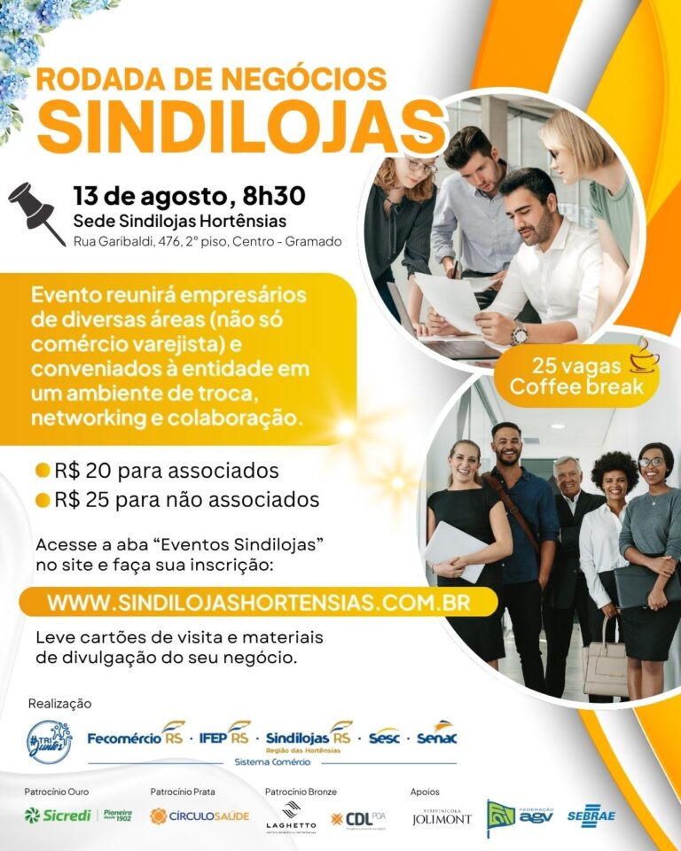Na manhã do dia 13 de agosto, o Sindilojas Região das Hortênsias promoverá uma Rodada de Negócios, evento pensado para incentivar conexões estratégicas e o crescimento coletivo
