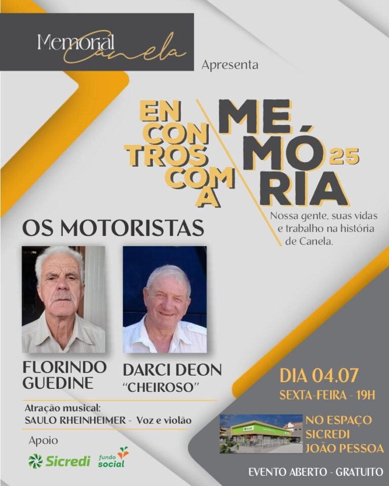 Motoristas são os convidados do Memorial Canela no dia 4 de julho “Os motoristas” será o tema do primeiro Encontro com a Memória que